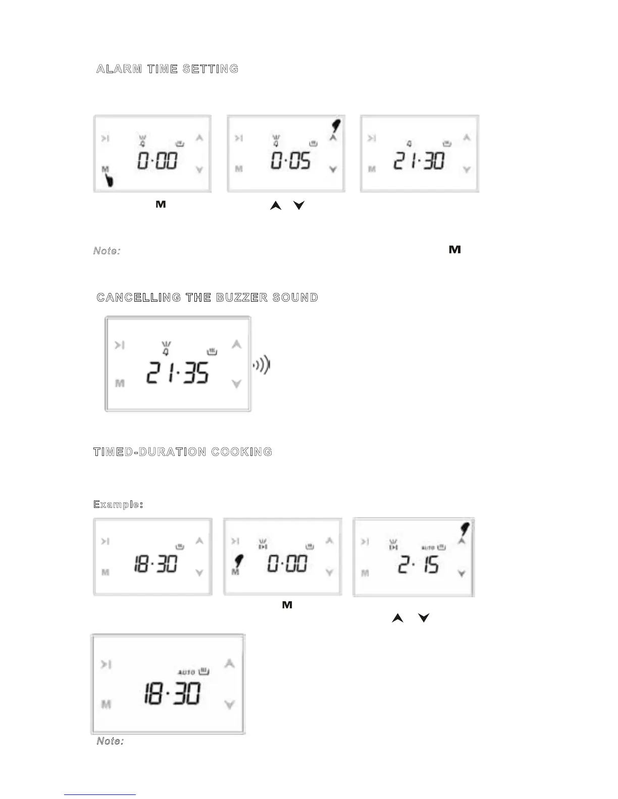 enter buzzer alarm mode. duration in minutes. screen will return to