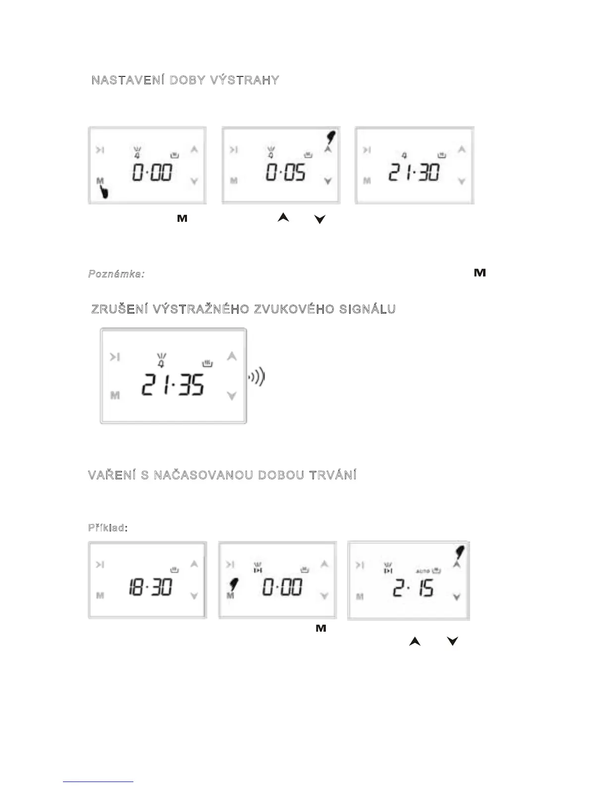 Příklad: Chtěli bychom připravovat maso v troubě po dobu 2 hodin a 15 minut.