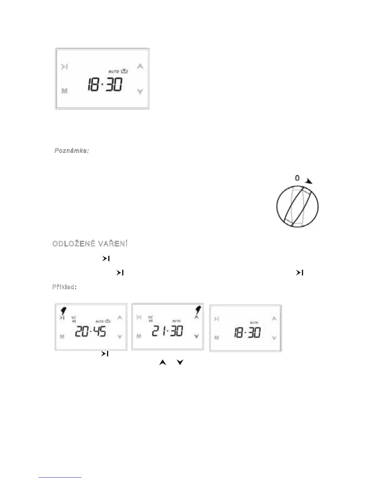 Stisknutím tlačítka se nastaví doba, kdy bude jídlo hotové (konec vaření) a v případě potřeby lze
