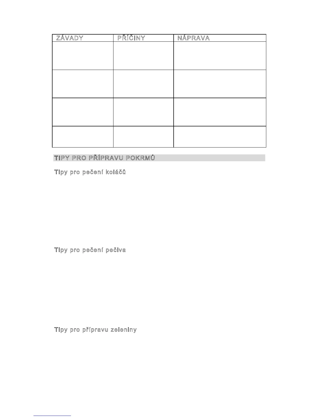 Pokud je pečivo příliš suché, zvyšte teplotu asi o 10 ºC a zkraťte