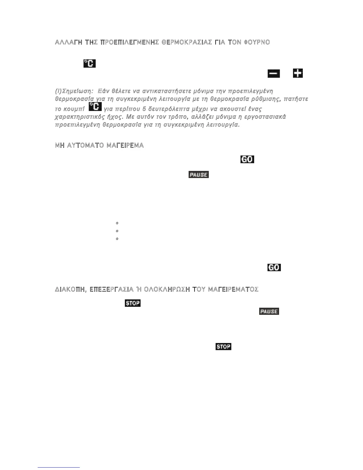 παρέλθει. Το μαγείρεμα συνεχίζεται μέχρι να διακοπεί από τον χρήστη με μη αυτόματο