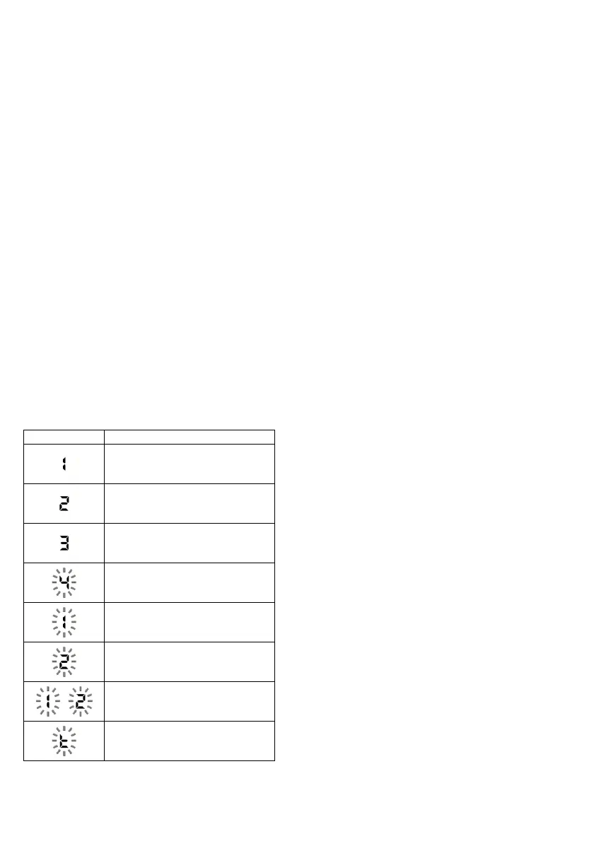 Tallene 1 og 2 blinker skiftevis i 2 sekunder.
