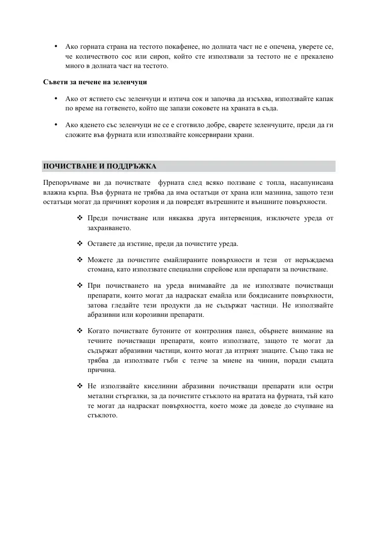 Препоръчваме ви да почиствате фурната след всяко ползване с топла, насапунисана