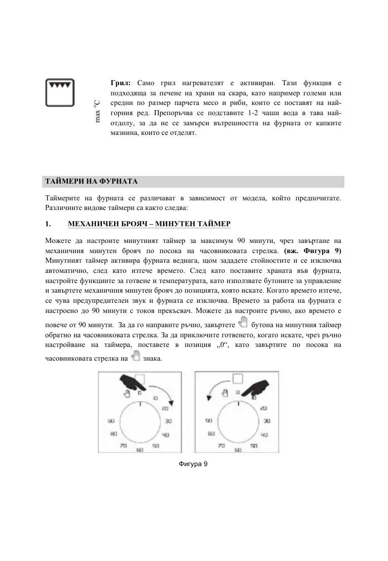 Минутният таймер активира фурната веднага, щом зададете стойностите и се изключва