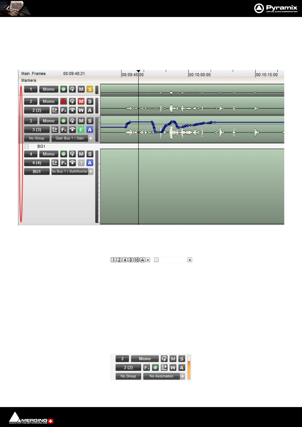 1, 2, 4, 8, 16, and A buttons at the bottom left of the Project Editing Panel automatically scale the vertical Track