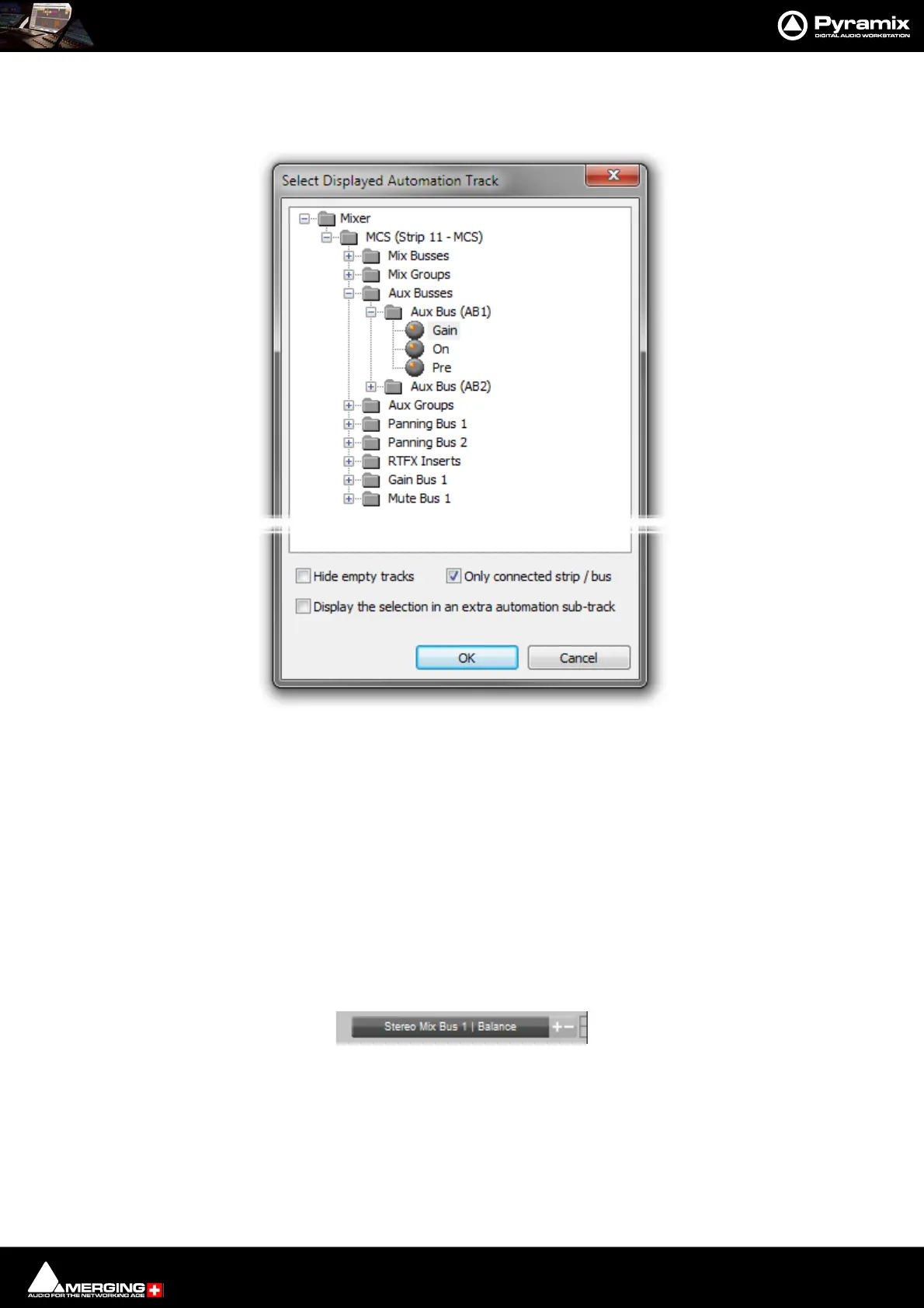 Only connected strip / bus When ticked only Strips and Buses connected are shown.