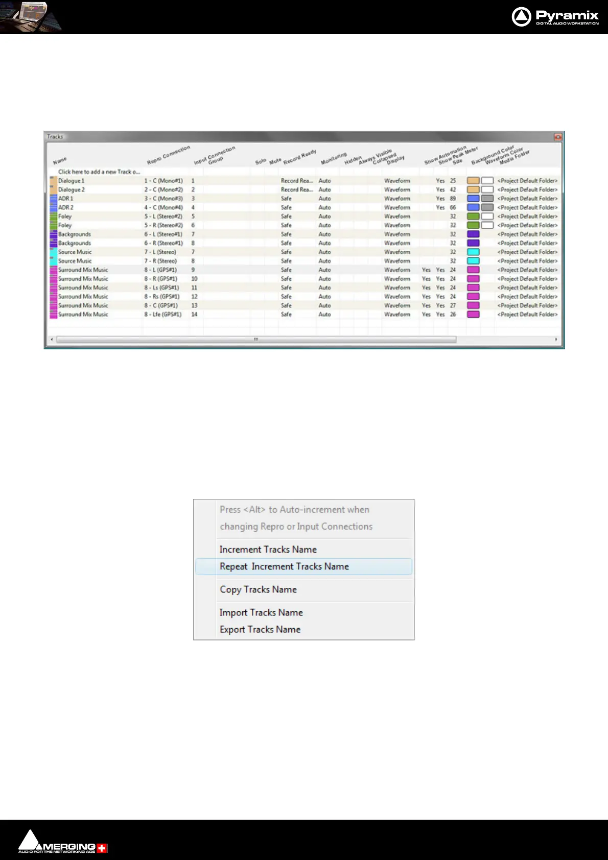 Repeat & Increment Tracks Name : Copies the first selected Tracks name to the rest of the selection and adds an