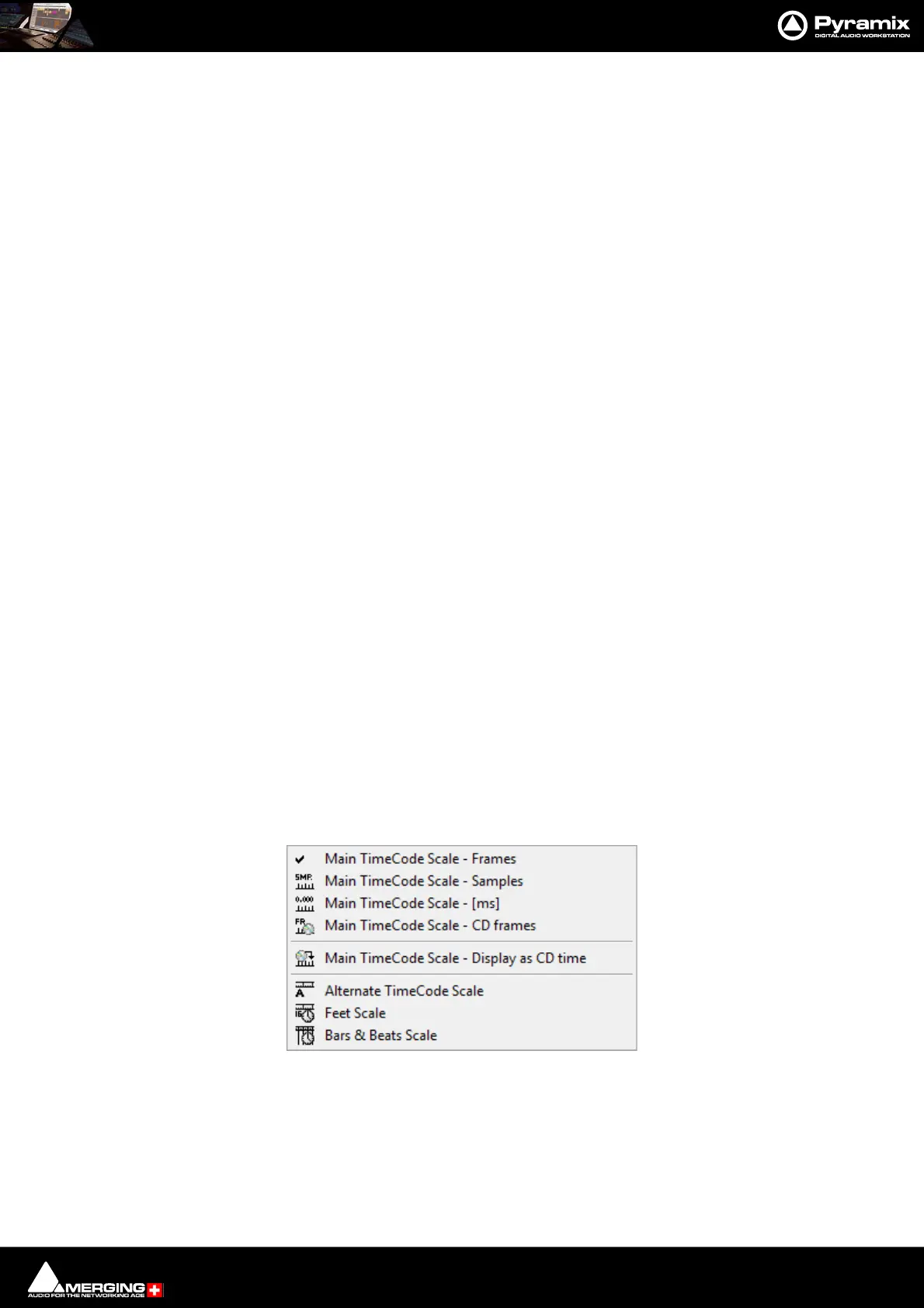 Pyramix is equipped with many Time Scale options. Each Time Scale has an associated Time Scale Ruler and Tool