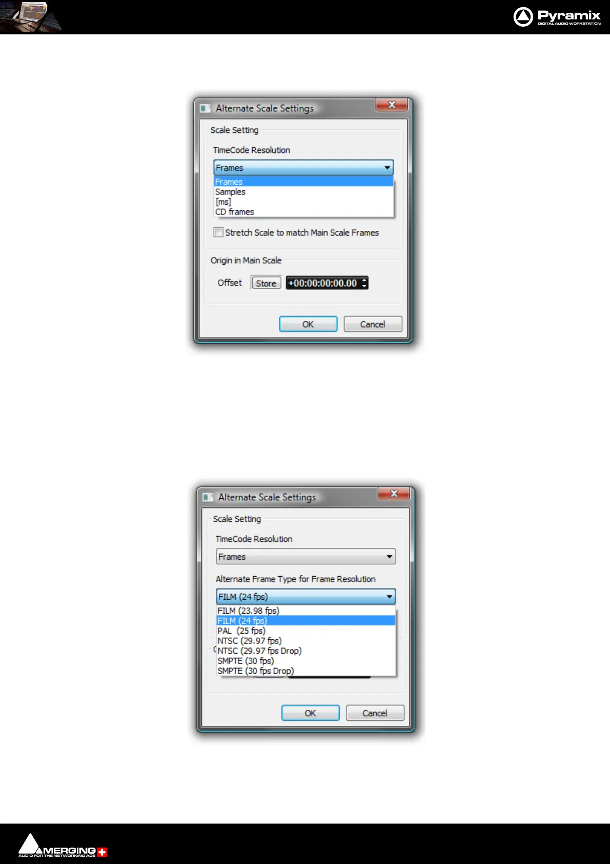 The Scale Setting combo box offers a choice of TimeCode resolution to display: