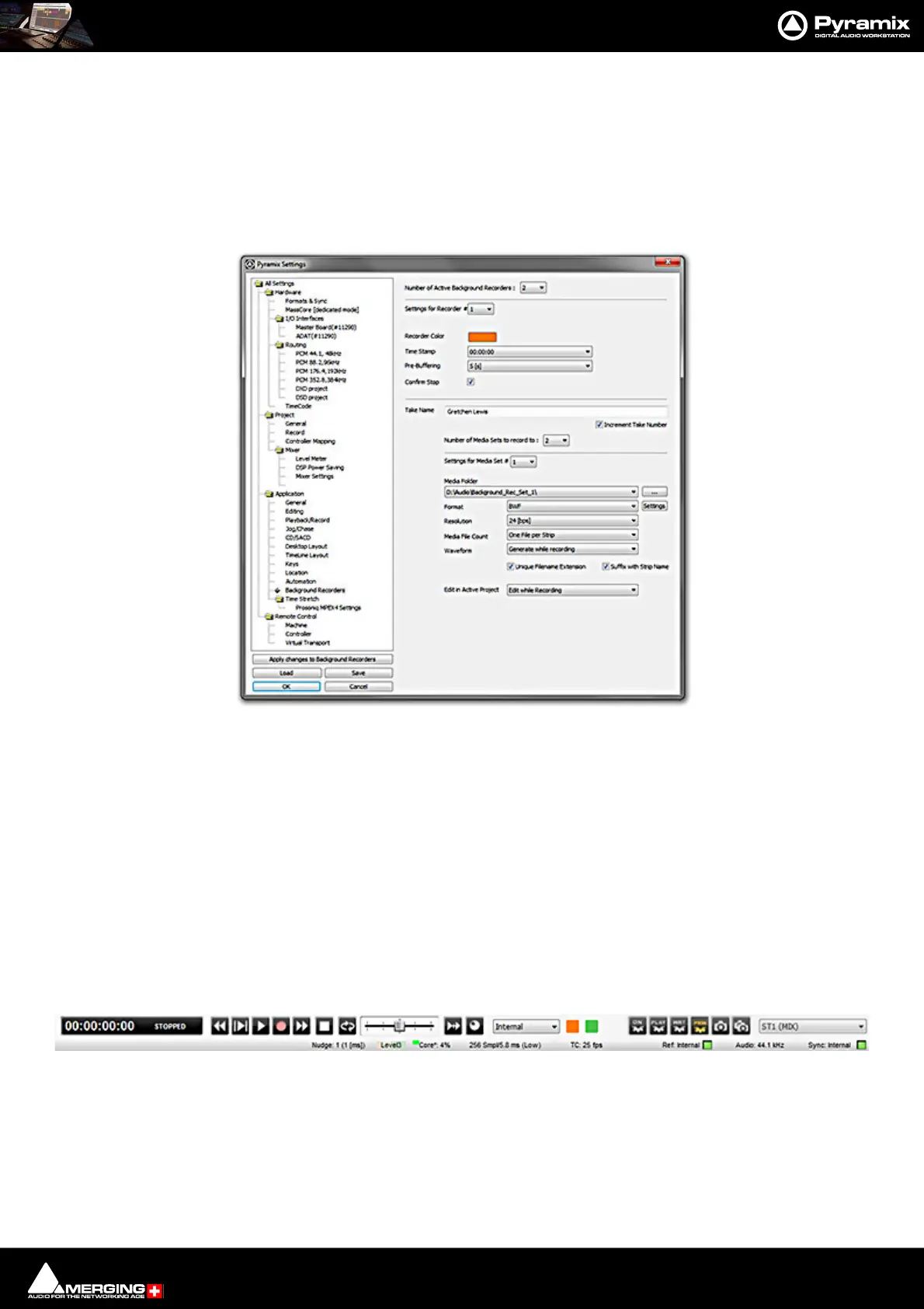 Once one or more Background Recorders have been set up they are operated from the Transport window or the
