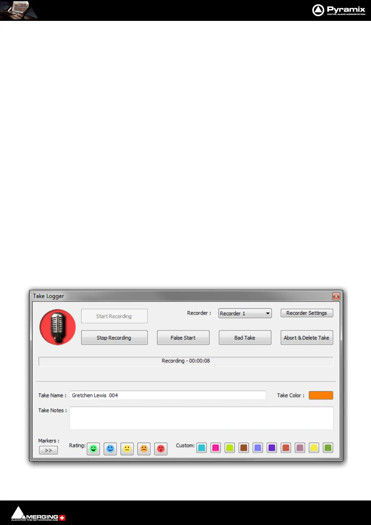 and to the Take Name. The resultant Clips will be colored in the Bad Take color specified in Settings > All Set-