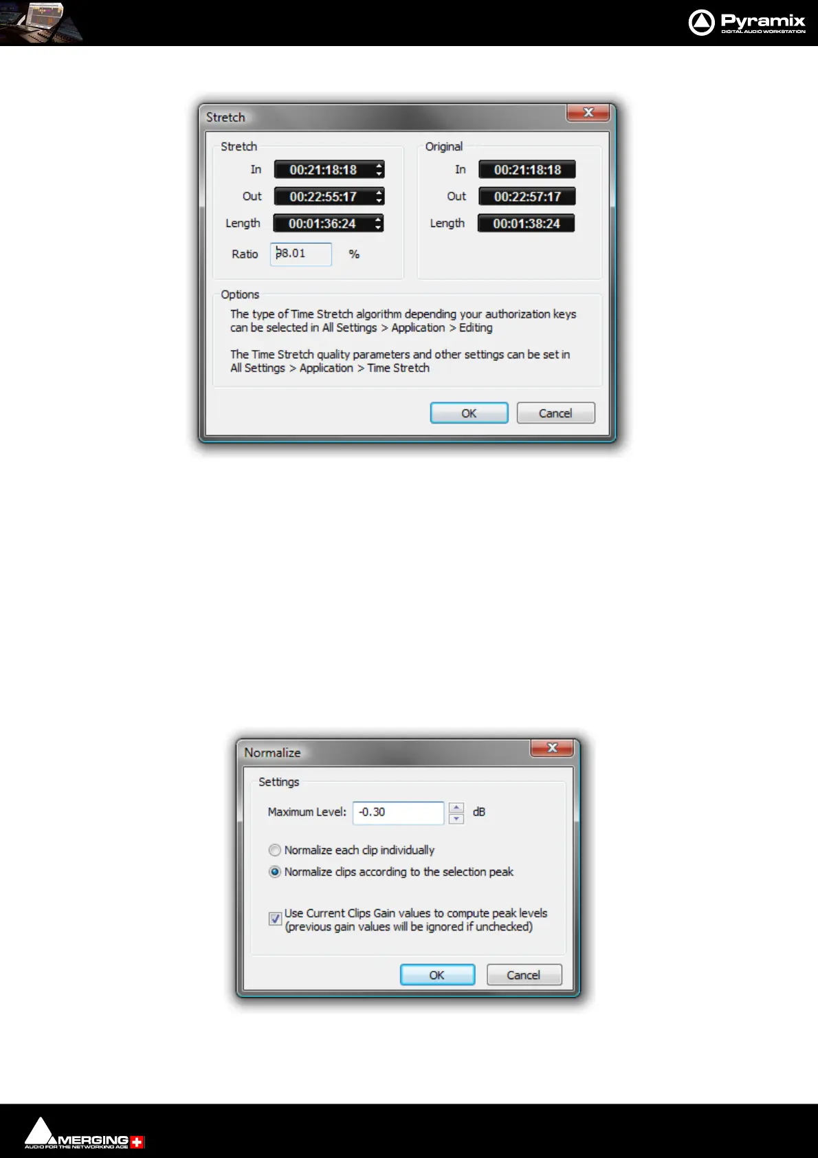 Normalize Opens the Normalize dialog.