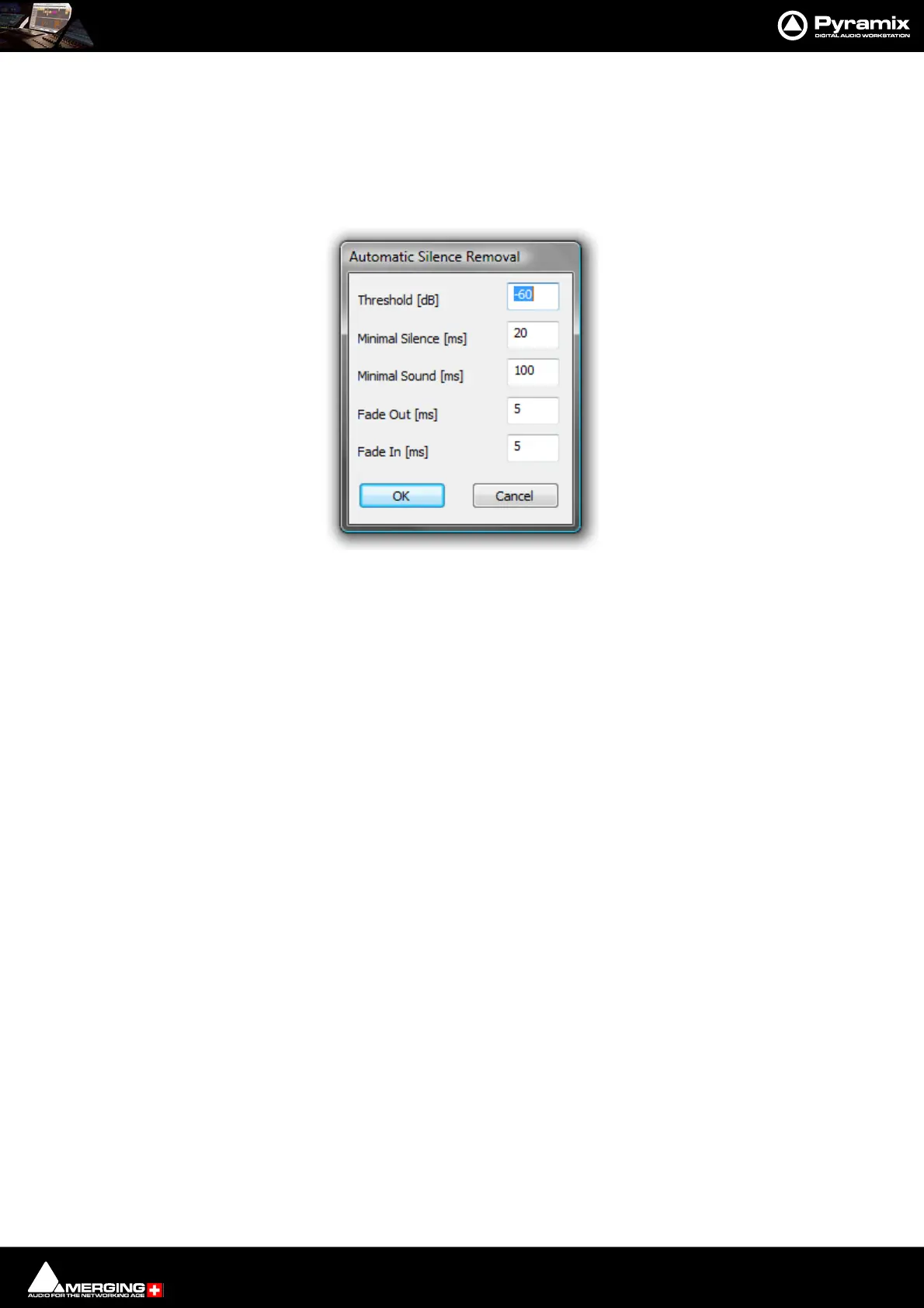 matic Silence Removal operation. The range for this setting is between 5 ms and 500ms (1/2 second).