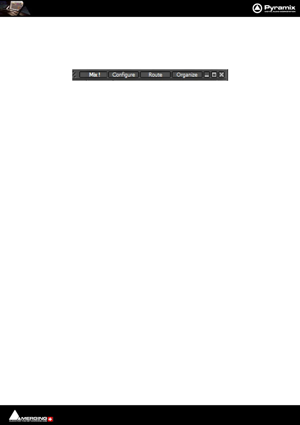 working in the main Mix ! page. The other pages, Configure, Route and Organize, toggle with the Mix ! screen