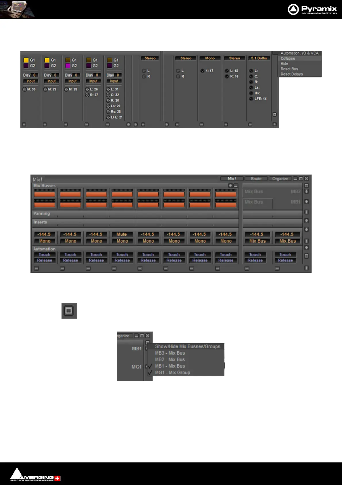 Show/Hide Mix Buses/Groups menu