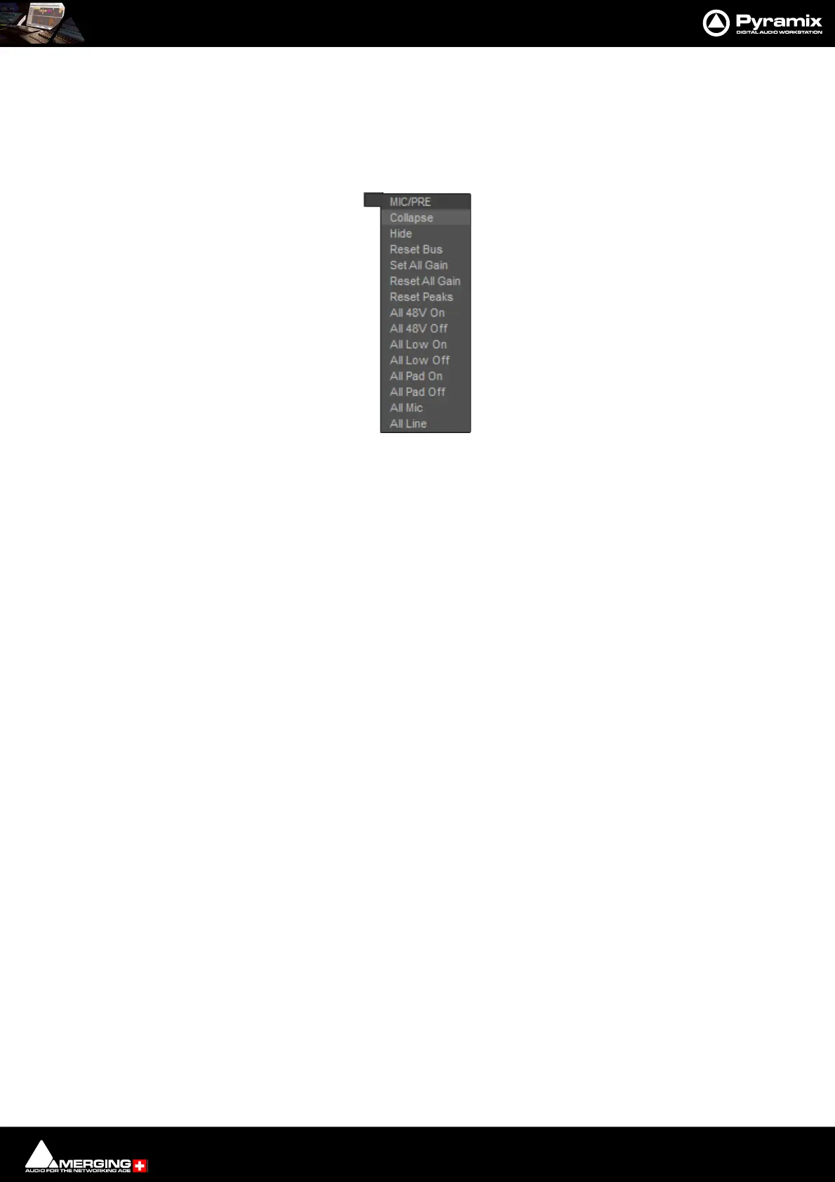 HORUS Preamp Remote Controls Context Menu