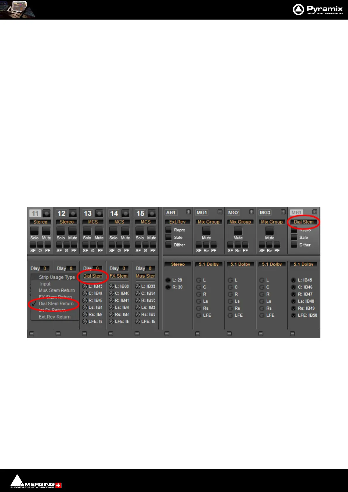 turned on, Pyramix calculates the required delay and applies it to all Output buses not feeding a Return Bus.