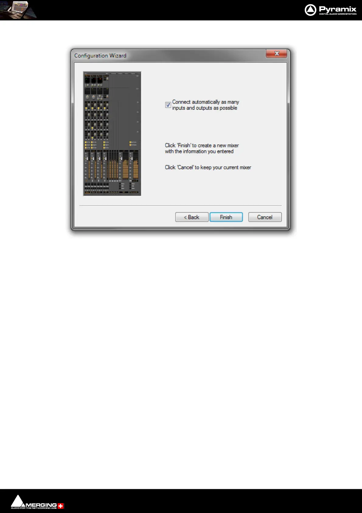 Cancel Keeps the current Mixer and closes the Wizard.