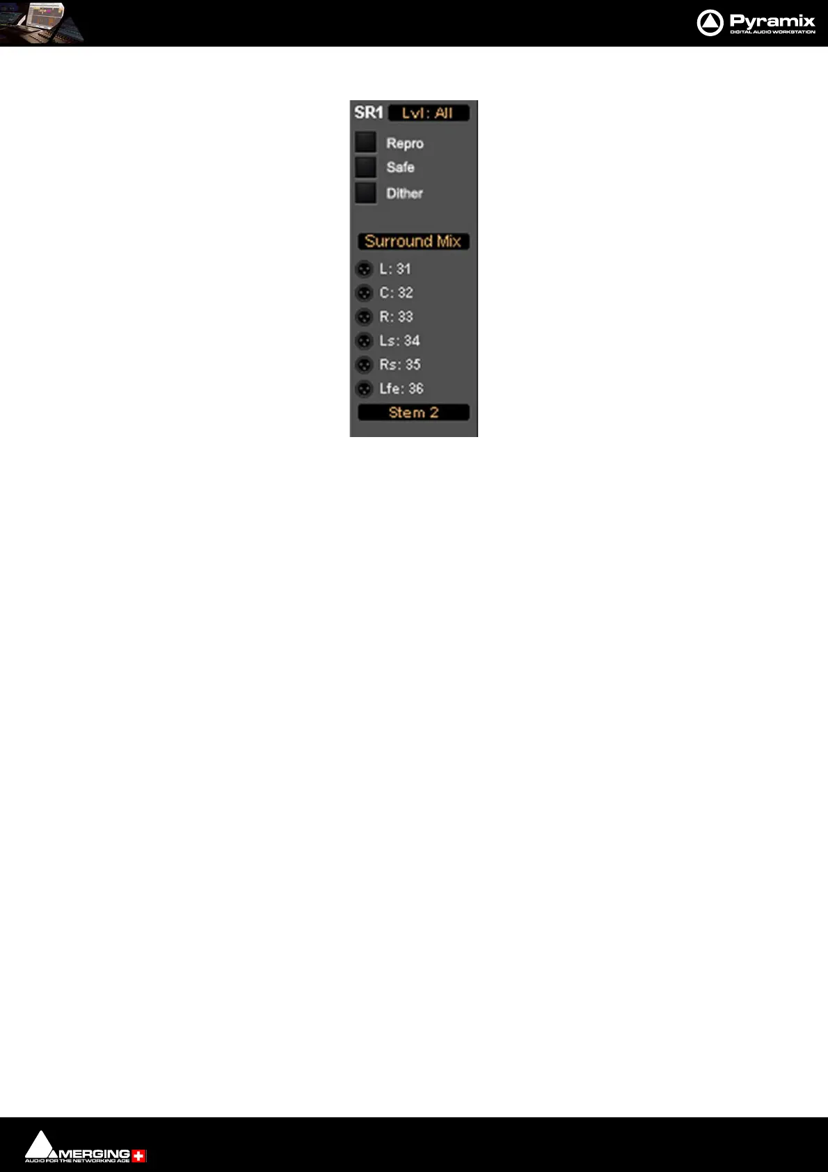 which meters the sum of all the Stems The bottom box shows and selects which Stem the XLR icons refer to. Rout-