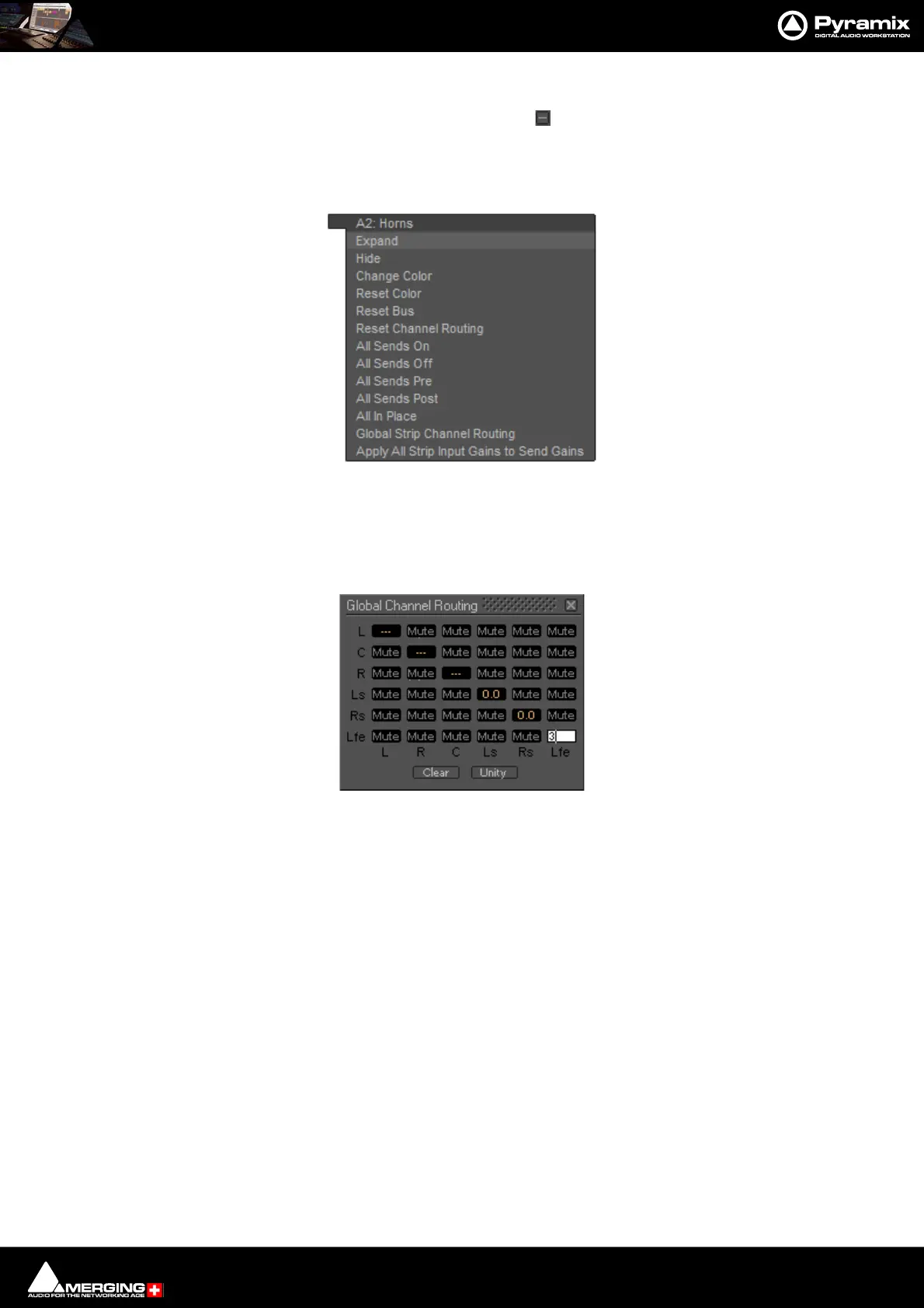 Note: Invoking either Clear or Unity will affect all Strips Aux Sends to this Aux Send Bus.