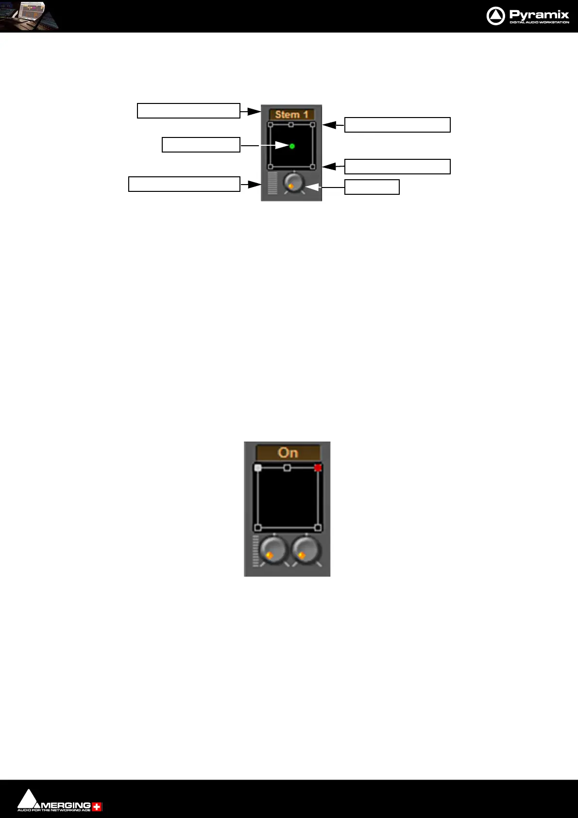 If a Multiple Surround Bus has been added to the mixer Stem ‘X’ appears at the top of the strip. Click on the box to