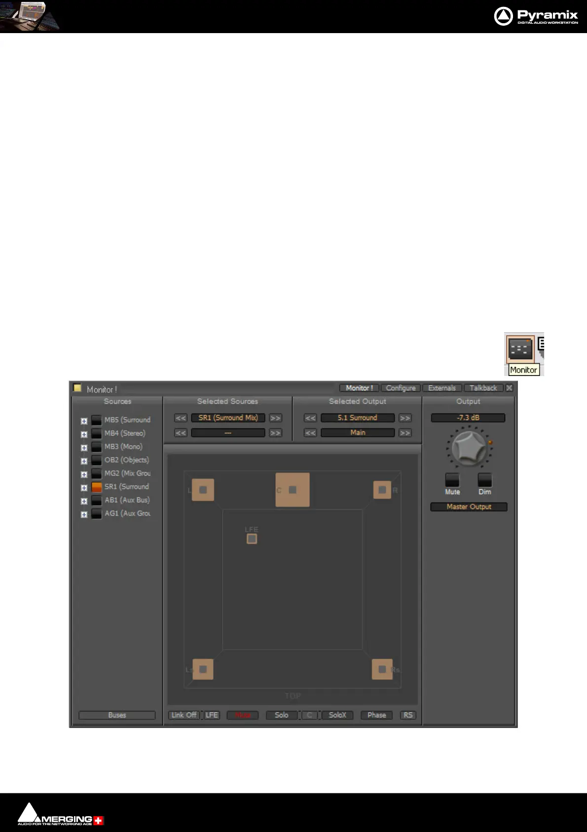 Pyramix has a dedicated Monitor section. This extremely powerful tool offers comprehensive monitoring facilities