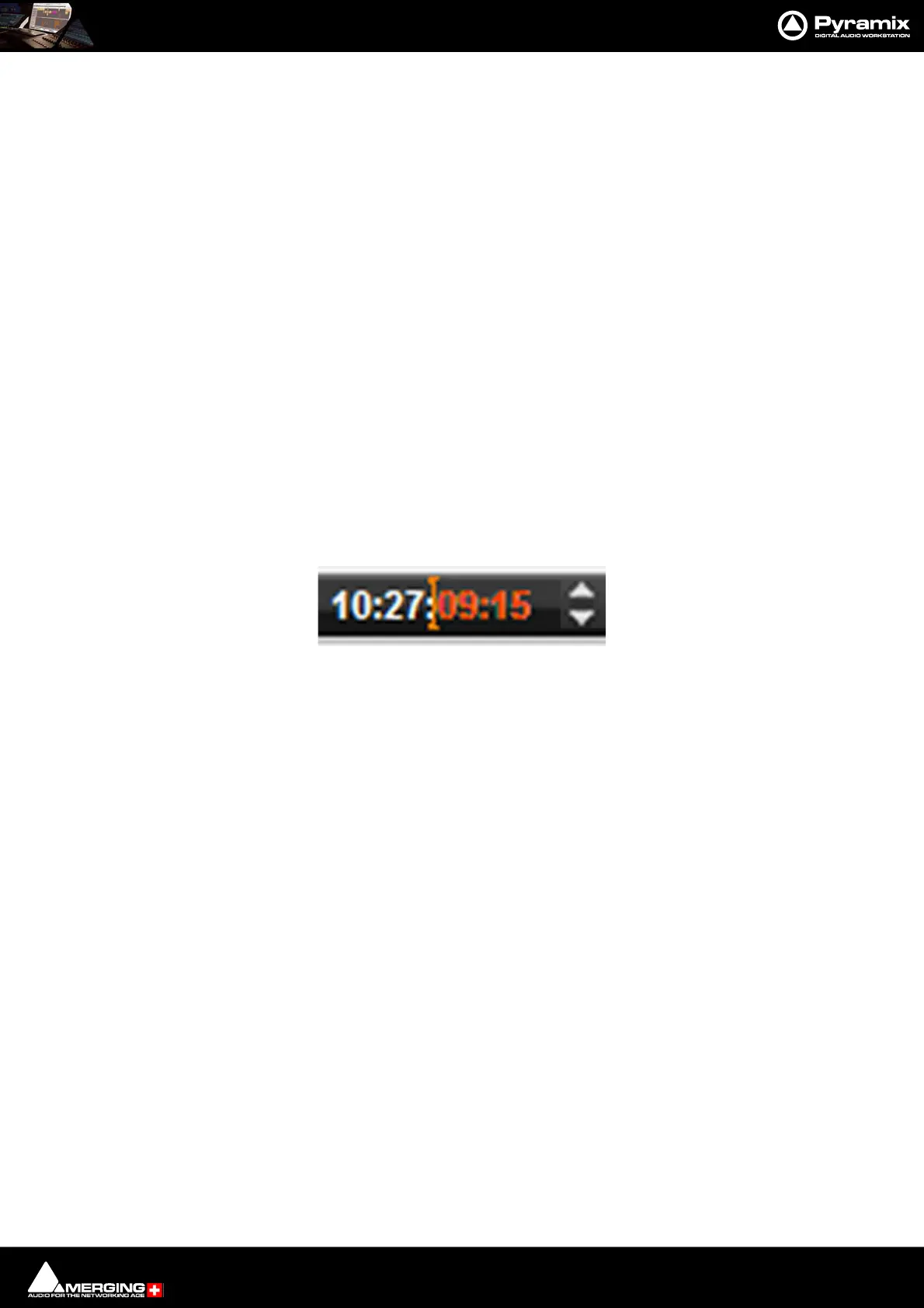 key finalizes the entry. In Pyramix numbers are entered in time code fields from right to left, a block at a time, pro-