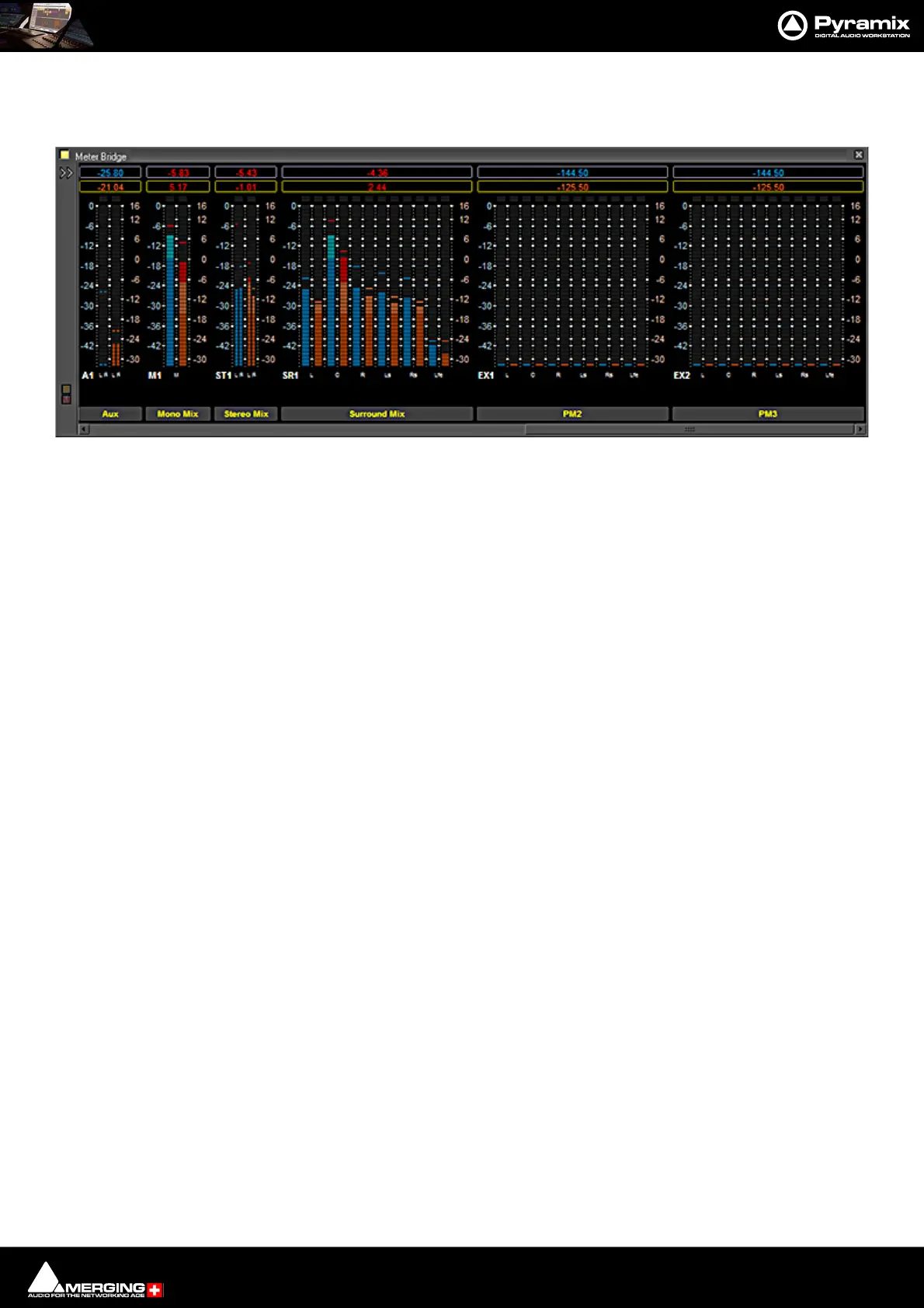 When lit, the Buses Meters source is taken pre-fader. (default is post-fader)