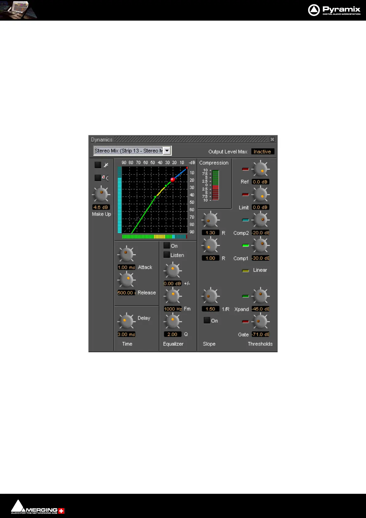 dynamics processor, and the user interface shows the operative dynamic range where each process takes effect.