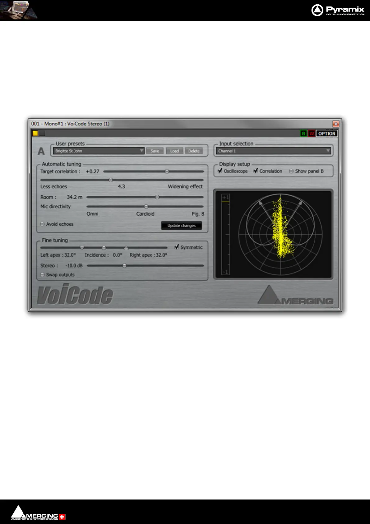 Voicode is a stereo-in/stereo-out VST plug-in. To produce a stereo output it MUST be inserted into a stereo chan-
