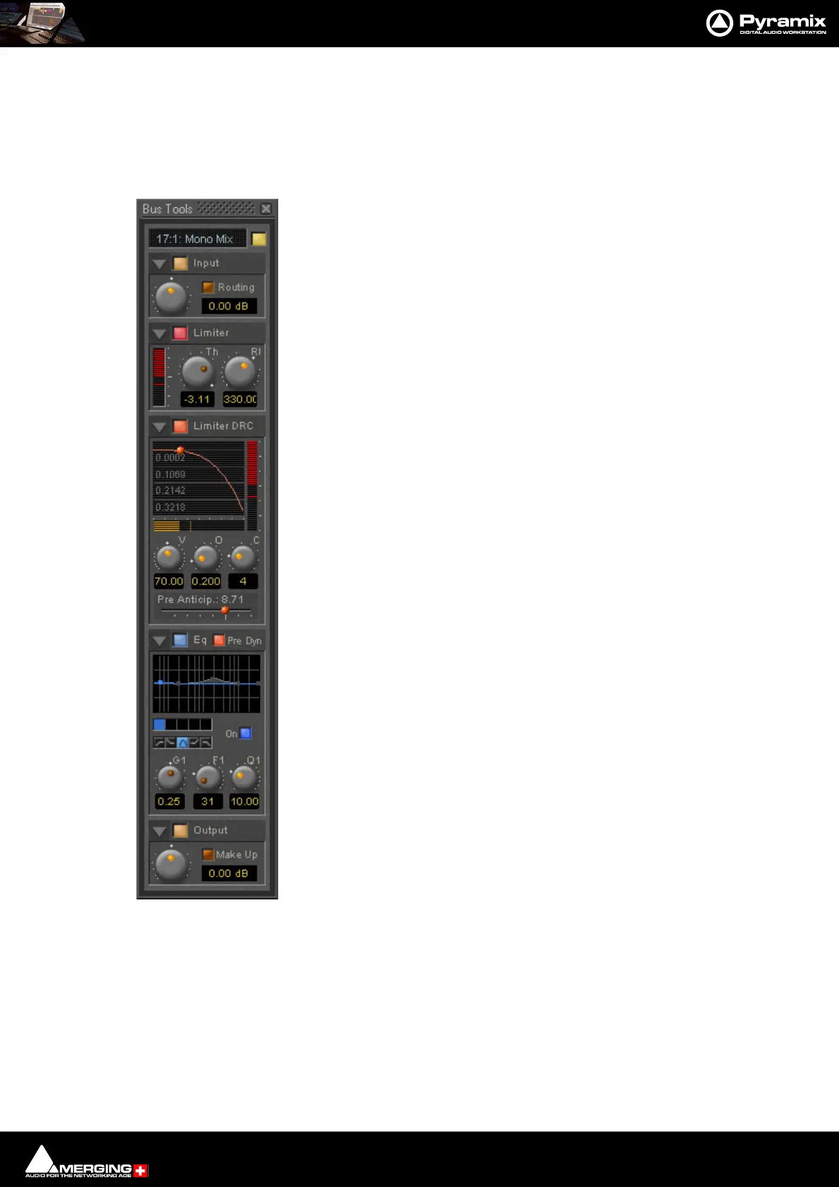 This section controls the output level of the Bus Tool and also offers automatic gain