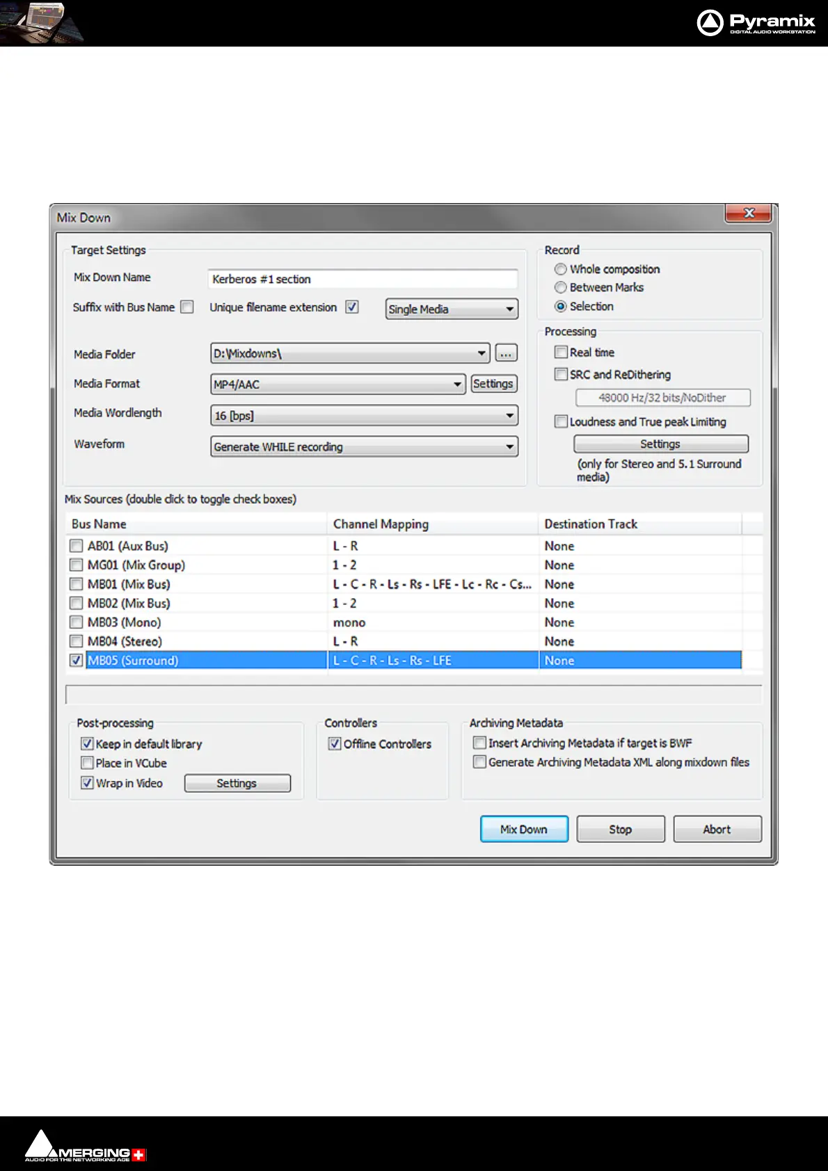 1. Choose Project > Mix Down to open the Mix Down dialog box.