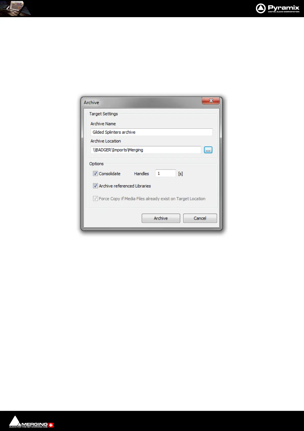 Project > Archive opens the Archive dialog :