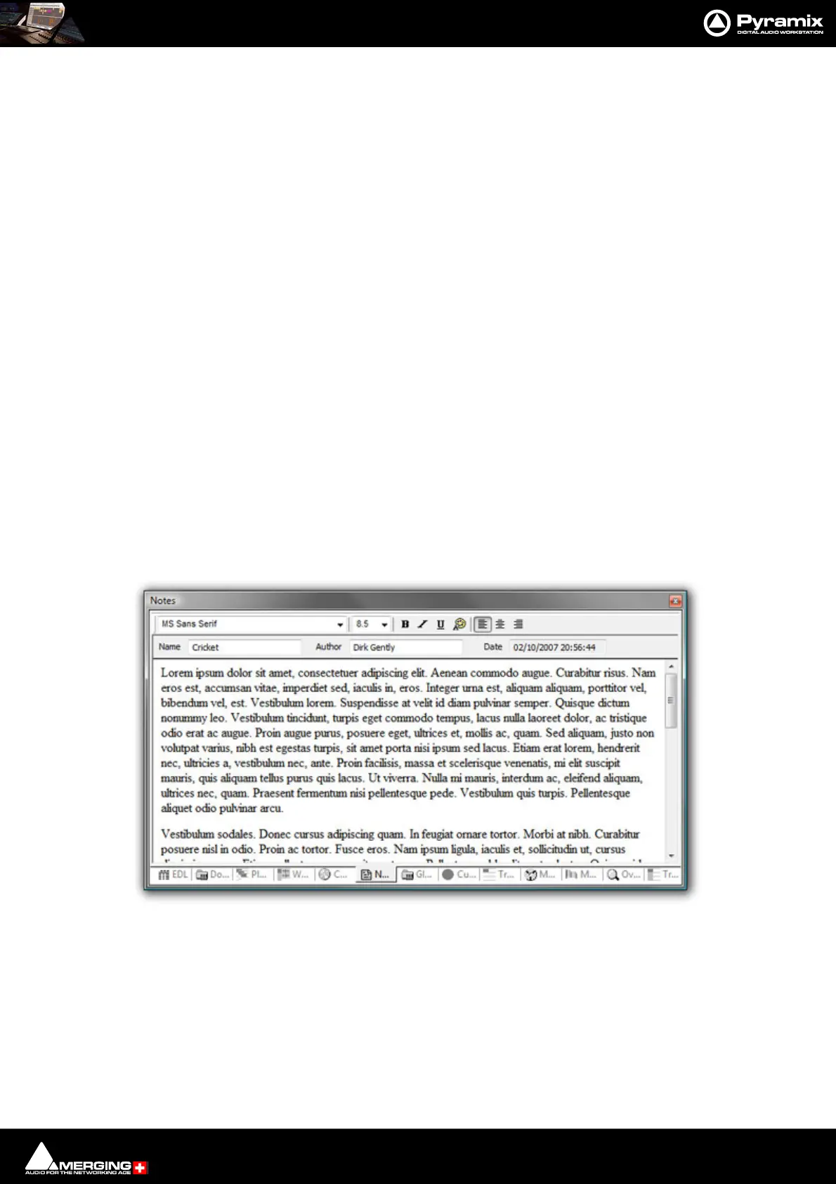 Notes entered here are saved with the project. The notes can be reviewed, edited and copied into other applica-