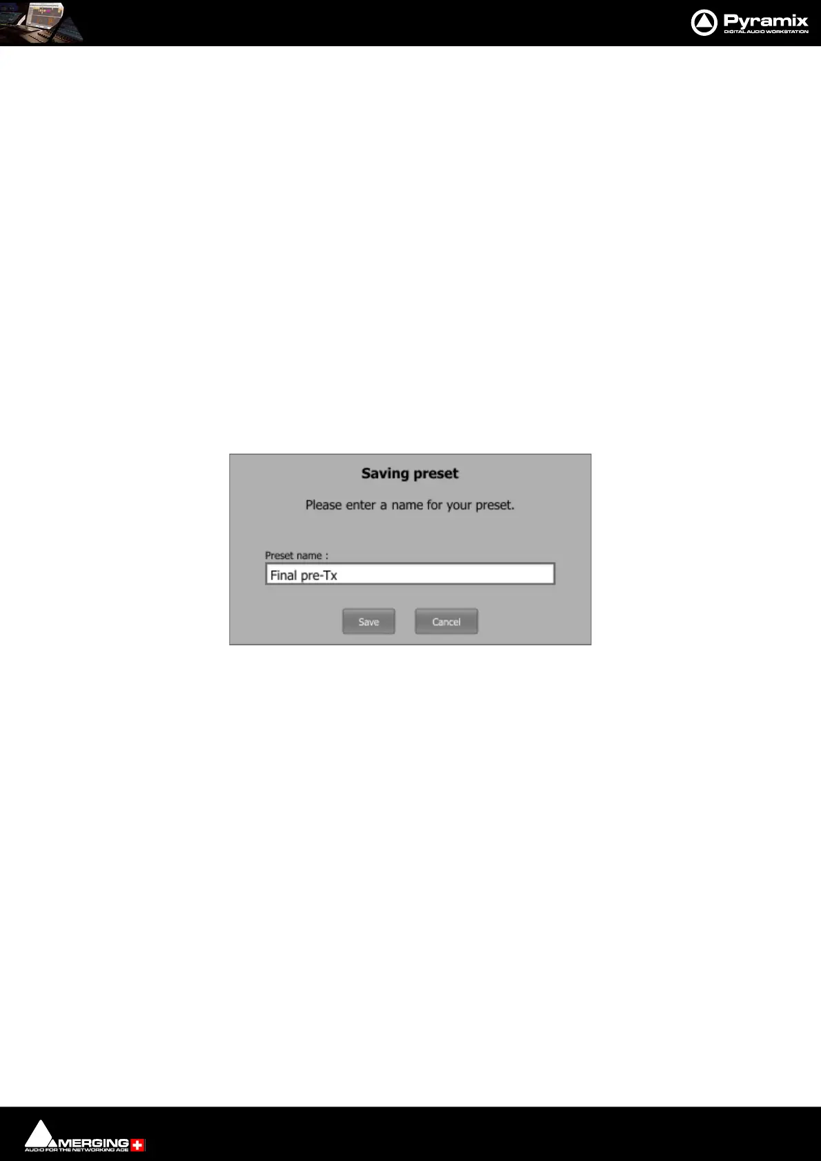 ever, restored or copied presets from another location will not be visible in Final Check until Pyramix is restarted.