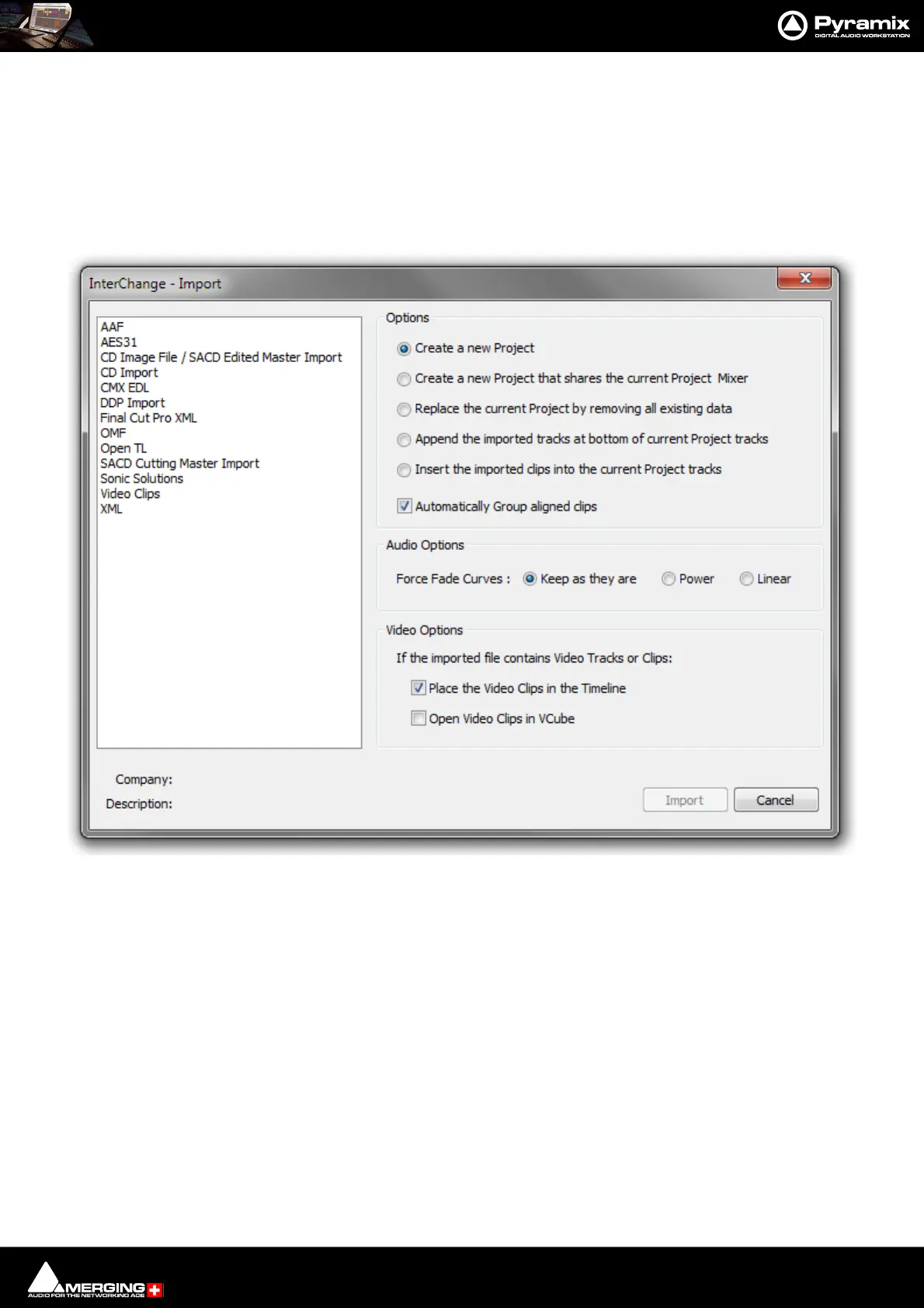 • Replace the current Project by removing all existing data - Replaces the current project Tracks, Track