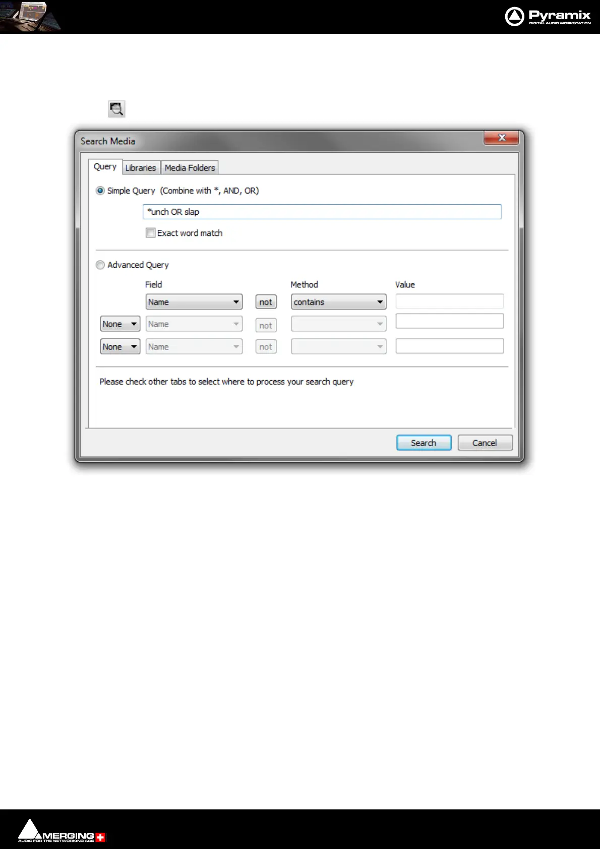 The Search Media dialog opens with the Query Tab. This Tab sets up the search terms.