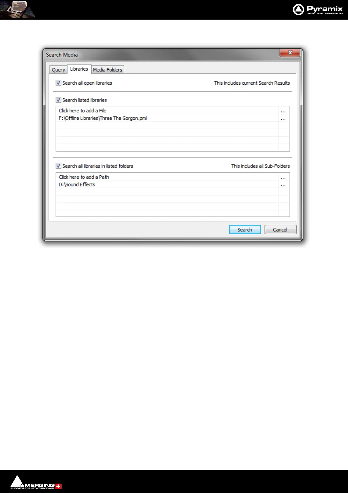 Search Media dialog - Libraries Tab