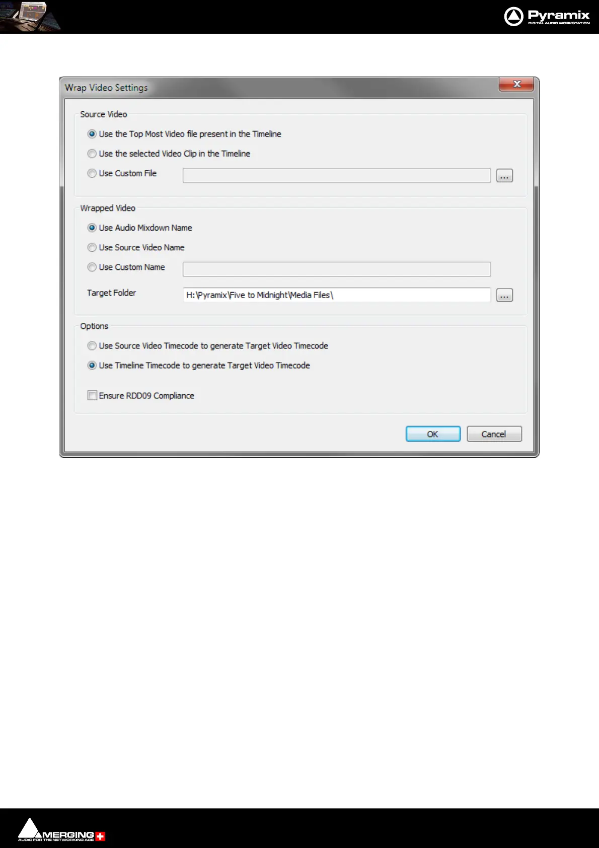line is changed (deselect the Video Track), on a subsequent Mixdown the Wrap Video Settings