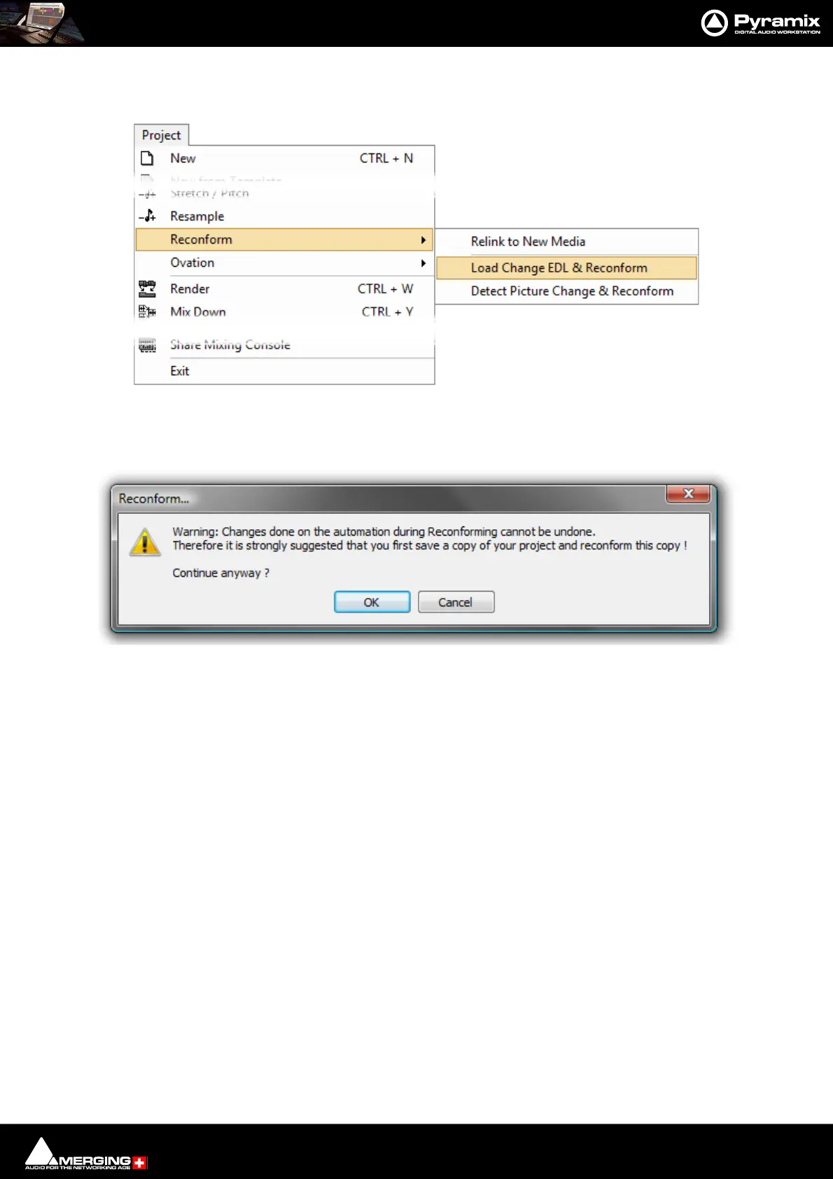 Pyramix Menu - Project > Reconform > Load Change EDL & Reconform
