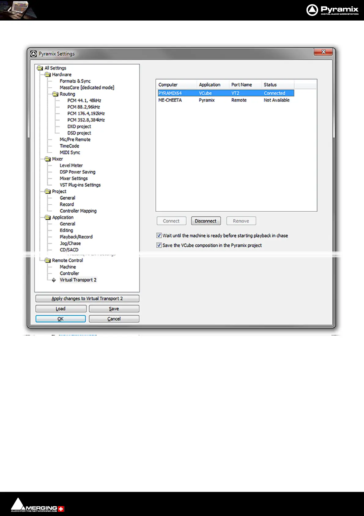 1. On the Master Pyramix machine open Settings > Remote Control > Virtual Transport 2.