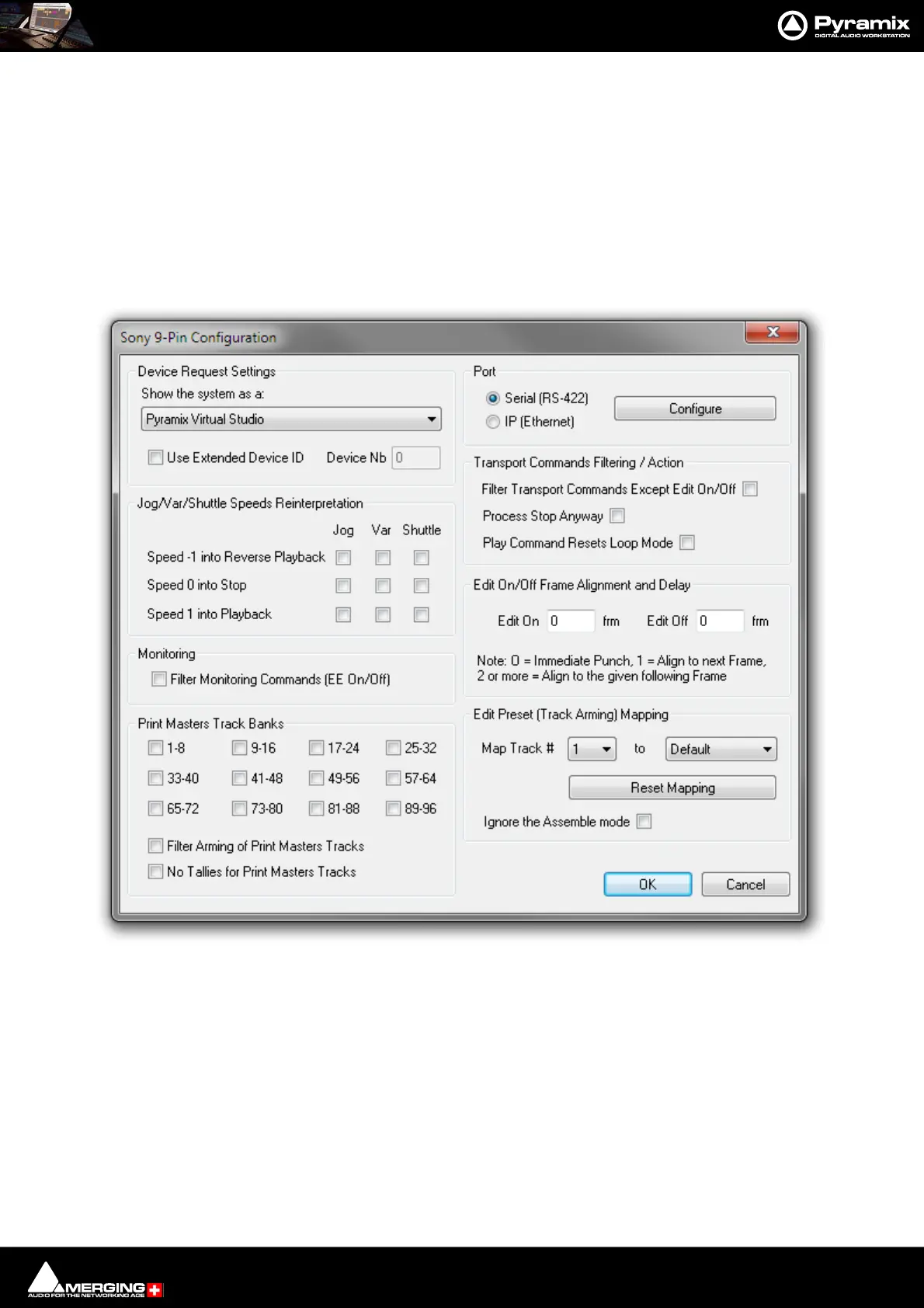 Sony 9 - Pin Protocol Configuration (Pyramix controlled by external device)