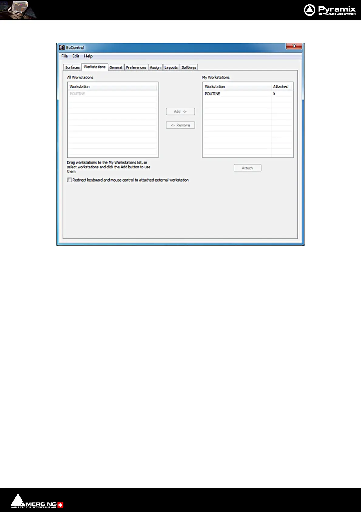 2. In the Workstation tab. Make sure the Pyramix PC is attached: