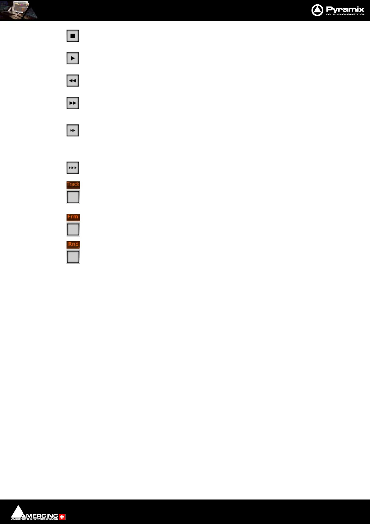 Play Transition Play the current track from the previous Stop marker minus pre-roll to the