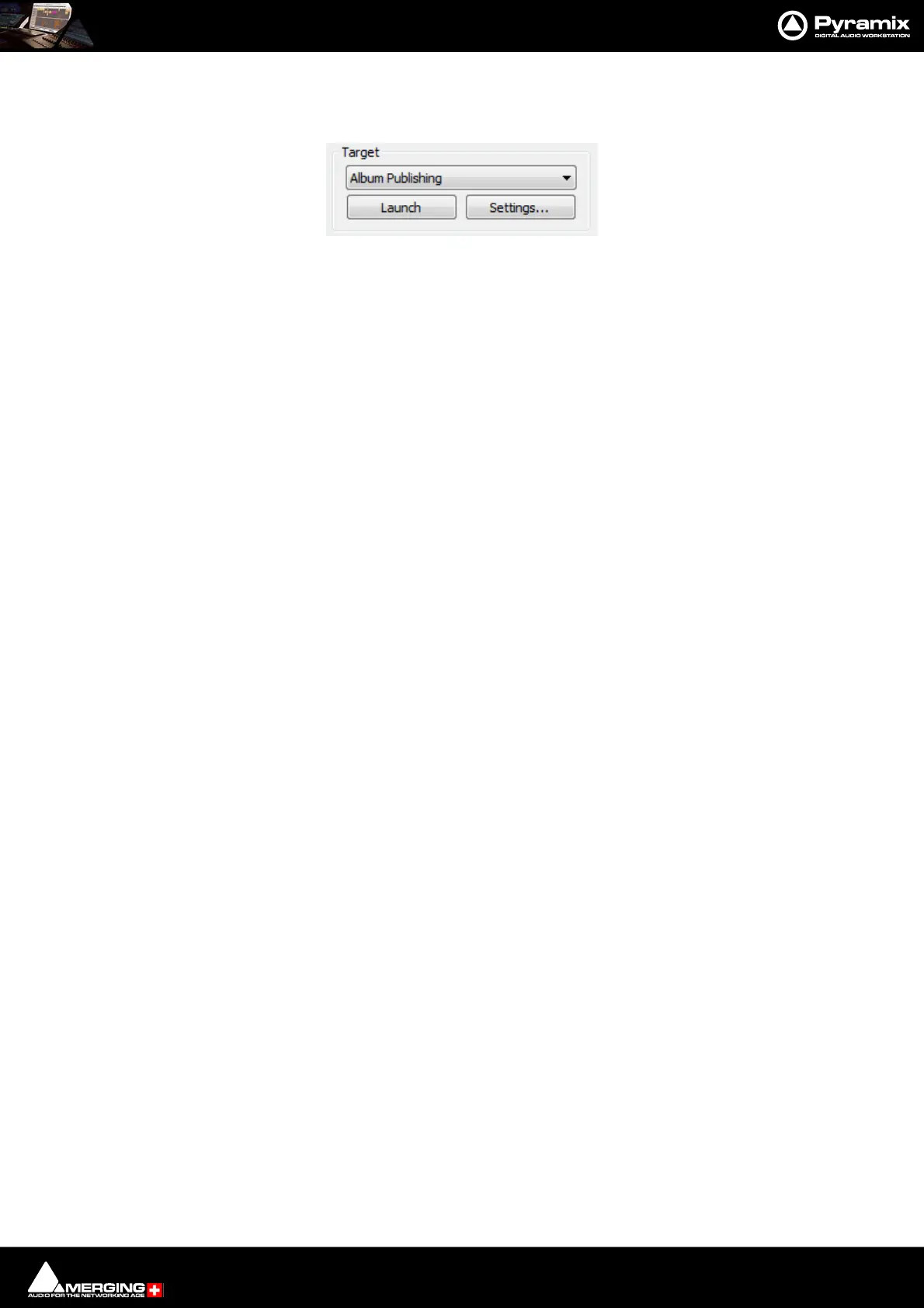 When Album Publishing is the selected target the Record button changes to Launch :