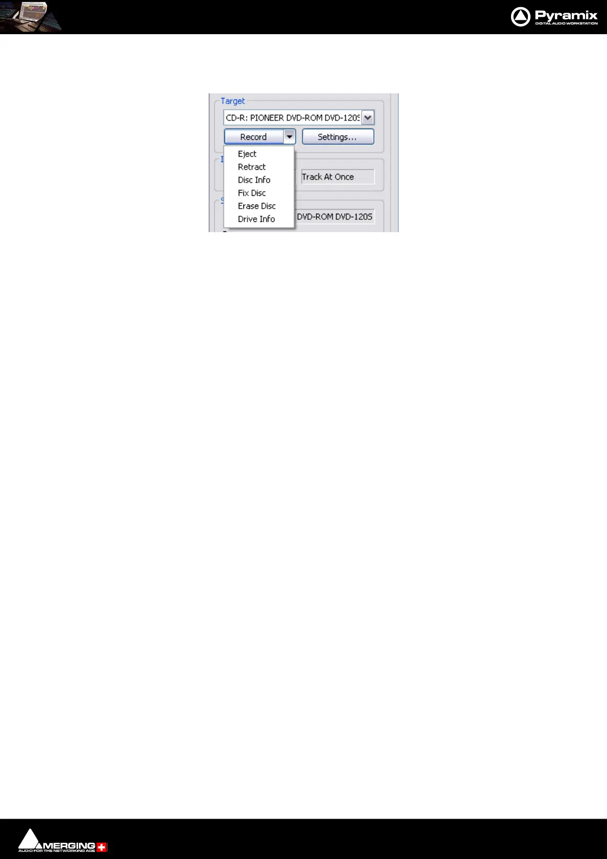 DiscWrite Target - CD-R Record drop-down