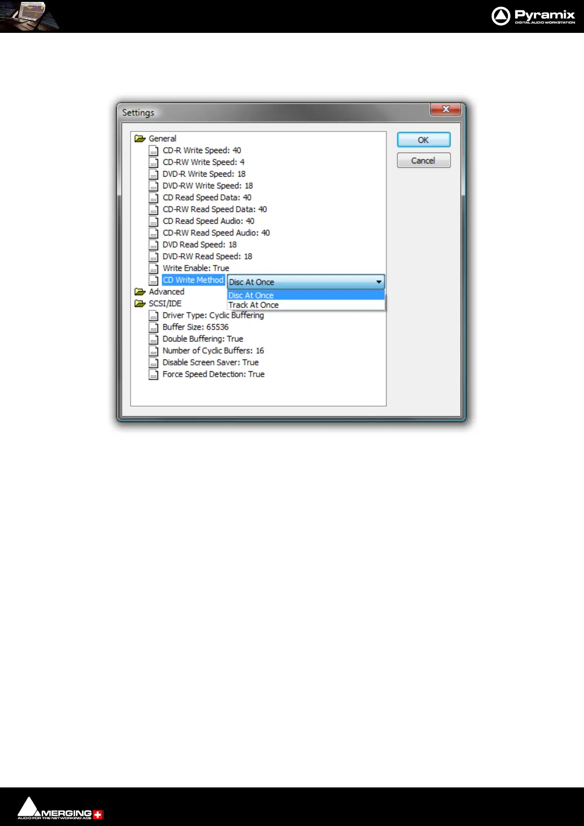 CD Write Method: entry is set to Disc At Once.