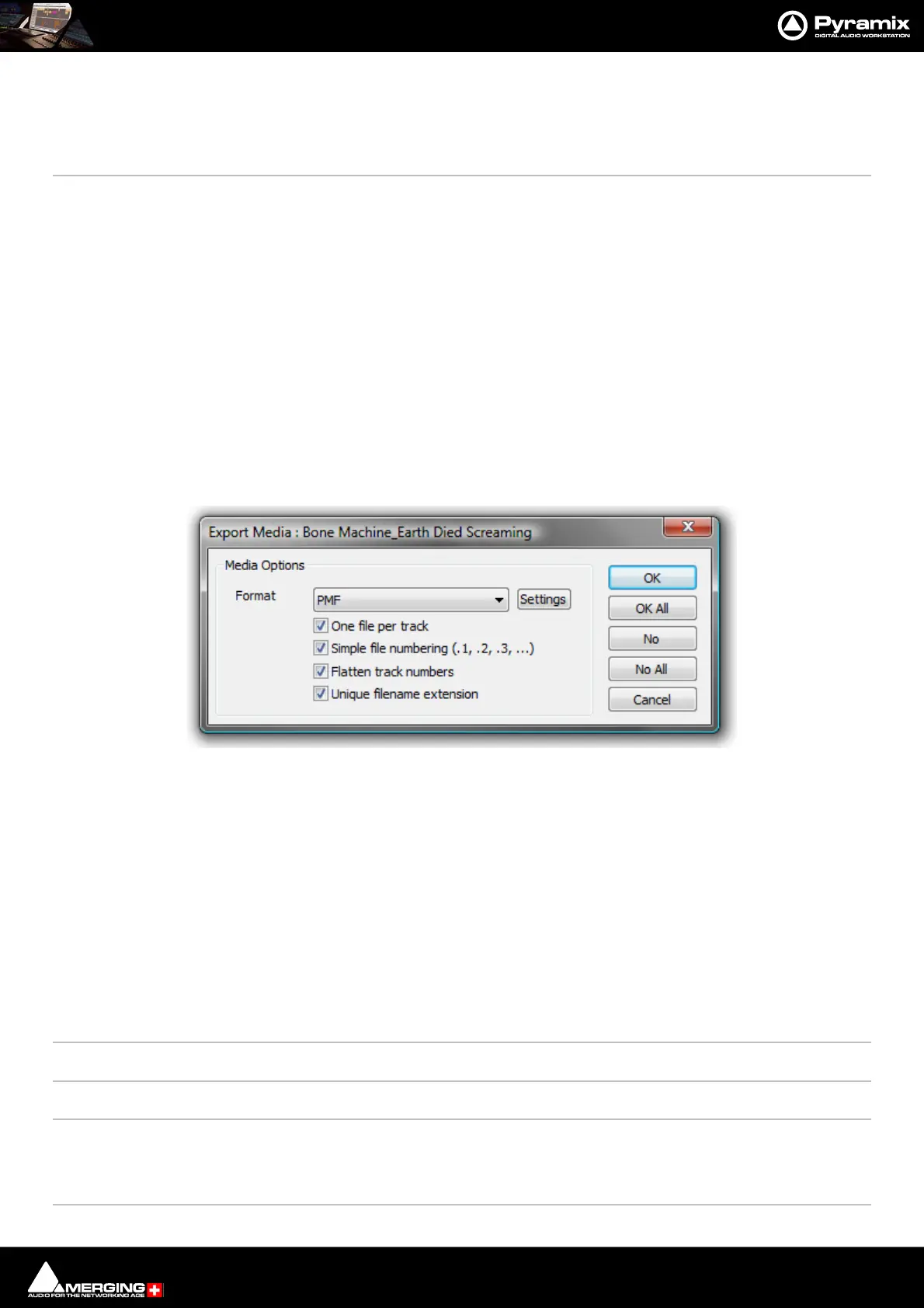 Quick Export Enables Pyramix Master Clips to be exported in any of the supported file formats with a