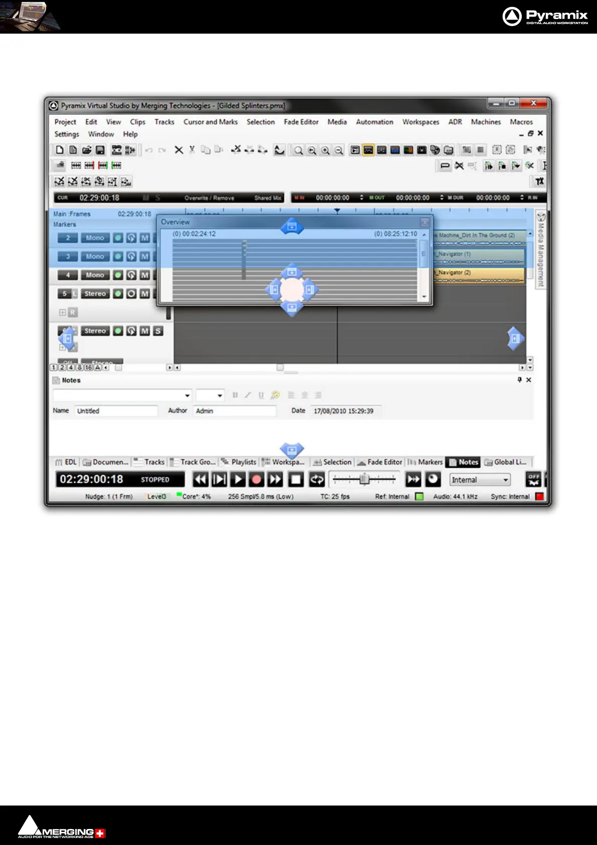 When the mouse button is released, the Overview will be positioned above the Timeline and can then be re-sized