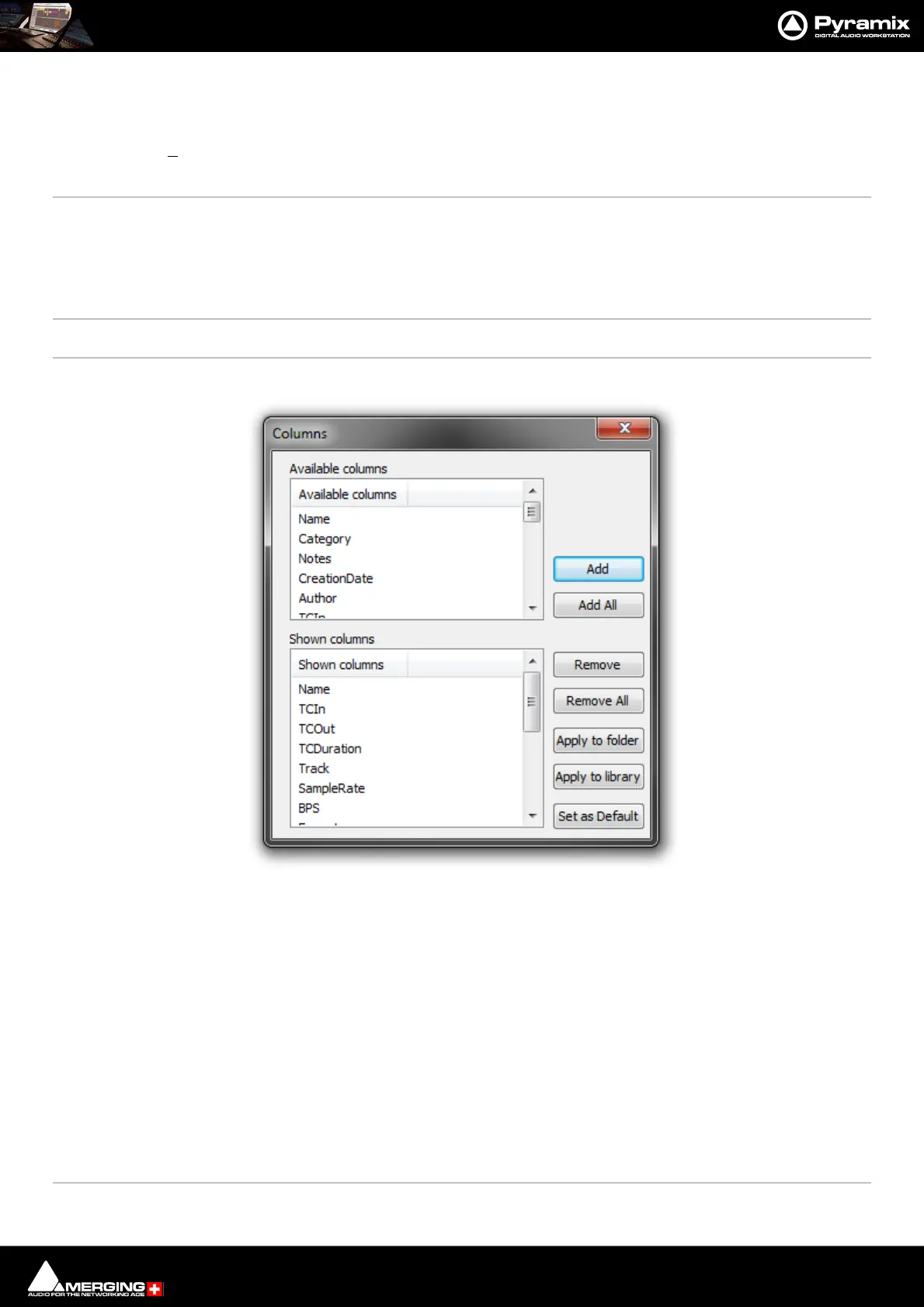 Set as Default Sets the changes made in this dialog as the default column content for all Folders
